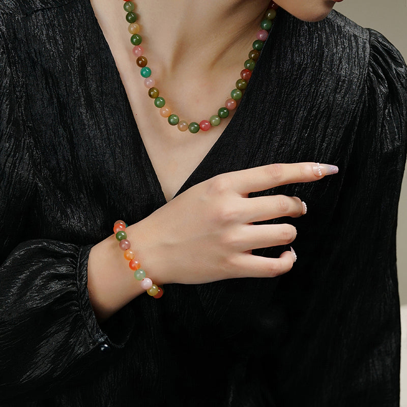 【7-15 JEWELRY】Rainbow color salt source agate 10MM necklace
