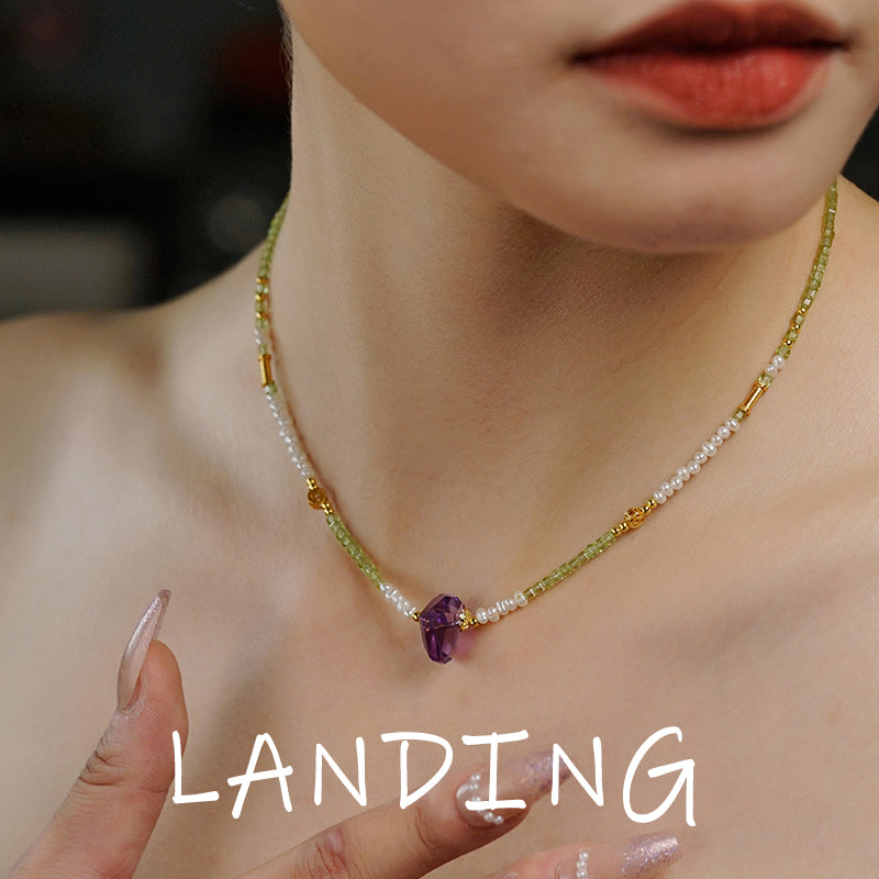 【8-24 JEWELRY】Peridot pearl necklace cool in summer